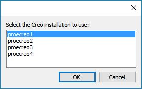 Aufforderung zur Auswahl der zu verwendenen Creo-Installation