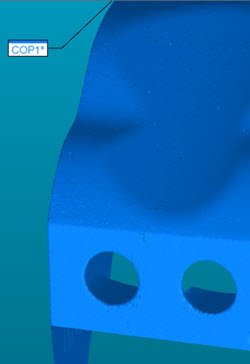 Zweiseitig - Diese Option zeigt eine schattierte Darstellung, bei dem die gescannte Seite des Werkstücks in der definierten PW-Farbe und die nicht gescannte Seite in einer Kontrastfarbe angezeigt wird. Wenn Ihre Punktewolkendaten Intensitätswerte enthalten, ersetzt PC-DMIS diese Option durch die Option Grauskala.