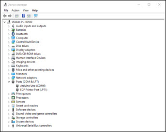 Ensure that the Arduino UNO appears as a COM port: