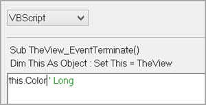 Das Gleiche gilt für die Eigenschaften. Wenn Sie den Eintrag Comments auf WAHR setzen, wird PC-DMIS jedes Mal, wenn Sie einer Eigenschaft "this."voranstellen, einen Kommentar mit seinen Typwerten in die aktuelle Zeile einfügen: