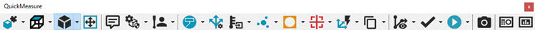 Die Symbolleiste Vision QuickMeasure gibt die typischen Arbeitsabläufe auf einem Vision-System wieder. Abhängig von der Systemkonfiguration ist sie über Ansicht | Symbolleisten aufrufbar. Dies ist identisch mit der Symbolleiste QuickMeasure in der Dokumentation über 'PC-DMIS KMG'. Weitere Informationen zur Symbolleiste QuickMeasure finden Sie im Abschnitt "Symbolleiste 'KMG QuickMeasure' in der Dokumentation über PC-DMIS KMG.