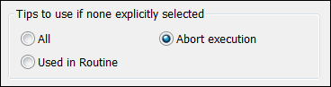 Abort execution - PC-DMIS aborts the execution or measurement. It treats the condition of no tip angles selected as an error condition.