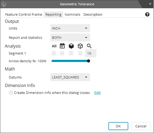 几何公差对话框的报告选项卡有多个选项,可控制 PC-DMIS 对计算值的评定和报告方式。报告选项卡如下所示: