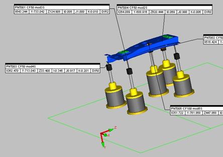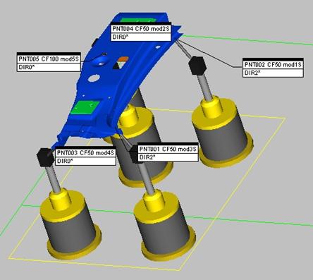 此示例显示在“图形显示”窗口中添加的每个夹具点的标签。要指定在夹具点标签中显示的信息,从夹具设置对话框的显示选项选项卡选择选项。