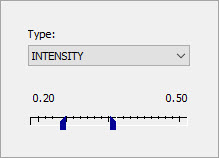 Die Schieberegler stellen die Mindest- und Höchstwerte für den Intensitätsbereich dar. Mit den im obigen Bild eingestellten Schiebereglern würden alle Punkte mit Intensitätswerten zwischen 0,20 und 0,50 beibehalten werden.