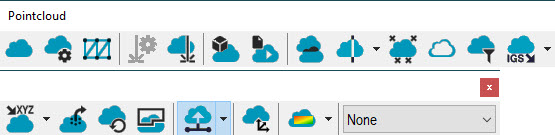 Die Symbolleiste Punktewolke umfasst alle Punktwolken-Vorgänge, -Elemente und -Funktionen. Abhängig von der Systemkonfiguration ist sie über Ansicht | Symbolleisten | Punktewolke aufrufbar.