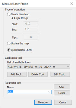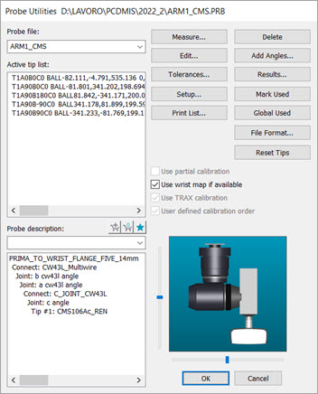 Klicken Sie auf Messen, um mit der Kalibrierung der Tastspitze zu beginnen. Nach Beendigung der Kalibrierung öffnet PC-DMIS das Dialogfeld Taster-Hilfsprogramme.
