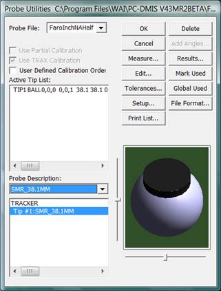 PC-DMIS version 4.3 includes the standard 12.7MM (1/2”), 22.225MM (0.875”), and 38.1MM (1-1/2”) SMRs.