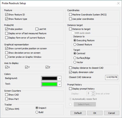 Weitere Informationen zum Dialogfeld Taster-Anzeige einrichten finden Sie unter "Einrichten der Ergebnisanzeige" im Abschnitt "Voreinstellungen" in der Hauptdokumentation von PC-DMIS.
