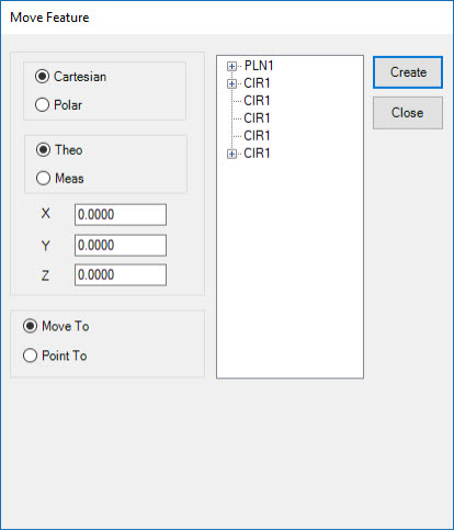 Das Dialogfeld Element bewegen ist verfügbar, wenn Sie entweder einen Leica-Tracker oder eine Totalstation von Leica verwenden. PC-DMIS zeigt das Dialogfenster an, wenn Sie das Symbolleistensymbol Element bewegen