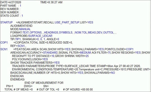 Klicken Sie im Dialogfeld Flächenscan auf Erstellen, um den Befehl Flächenscan zum Bearbeitungsfenster hinzuzufügen. Klicken Sie dann auf Schließen, um zum PC-DMIS-Hauptbildschirm zurückzukehren.