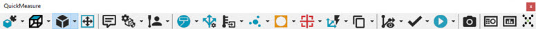 Die Symbolleiste Vision QuickMeasure gibt die typischen Arbeitsabläufe auf einem Vision-System wieder. Abhängig von der Systemkonfiguration ist sie über Ansicht | Symbolleisten aufrufbar. Dies ist identisch mit der Symbolleiste QuickMeasure in der Dokumentation über 'PC-DMIS KMG'. Weitere Informationen zur Symbolleiste QuickMeasure finden Sie im Abschnitt "Symbolleiste 'KMG QuickMeasure' in der Dokumentation über PC-DMIS KMG.