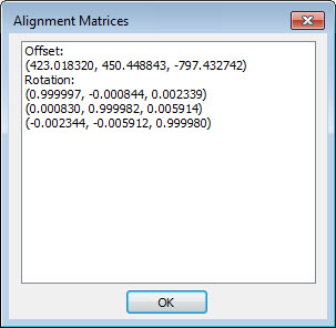 Matrix - This button displays the Alignment Matrices dialog box for the mesh alignment. The numerical values of the mesh alignment in offset and rotation matrices are listed.