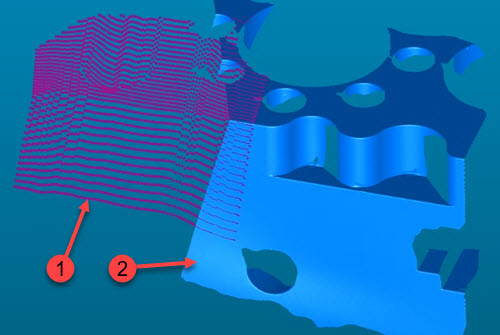 During a scan with the Mesh option, if you clear the Stitch Patches check box, the software overlays multiple scan passes on top of each other.