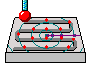 12. Manually drag the probe over the surface you want to scan. As the probe approaches each section, you will hear a continual audible tone that gradually increases in pitch until the probe crosses the section. This audible cue helps you determine how close the probe is to a section crossing. PC-DMIS accepts hits from the controller each time the probe crosses the defined section or sections.