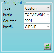 Counter box: Type an integer value for the feature counter. The maximum value is four digits. The Counter box is available for all three Type options, and it is the only option when you select None from the Type list. PC-DMIS increments the Counter value by one each time you create a feature. The following options appear when you select the VW type: