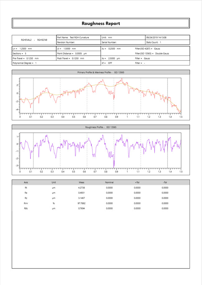 ISO 4287 - This option generates a PDF report with plots drawn according to the ISO 4287 standard.