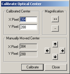 2. Click Calibrate to open the Calibrate Optical Center dialog box.