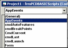 In your script, be sure to "set" the AppEvents object variable sometime after you "set" the Pcdlrn.Application object. For example, you will need to have these two lines of code somewhere in your script: