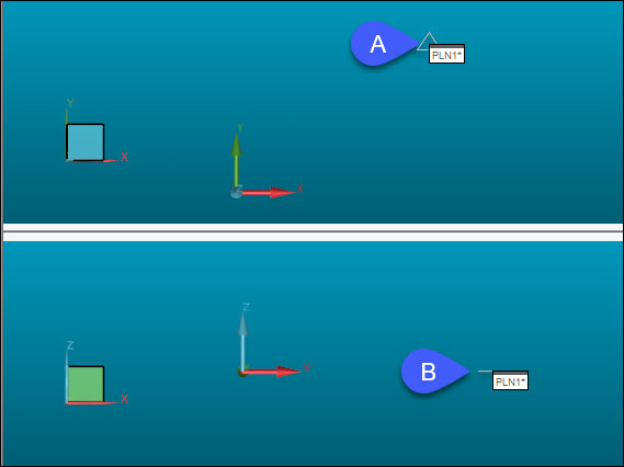 Les images ci-dessous et d'autres pour divers éléments d'alignement ne présentent délibérément pas le modèle CAO. De cette façon, vous pouvez facilement voir ce que PC-DMIS insère dans la fenêtre d'affichage graphique quand vous créez ces éléments.