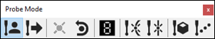 La barre d'outils Mode palpeur comporte des icônes permettant de passer dans les différents modes utilisés par le palpeur ou la MMT.