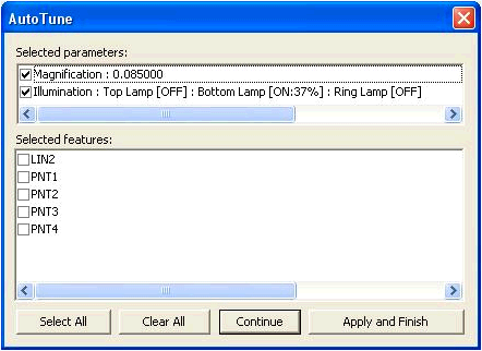 Quand vous exécutez votre routine de mesure en mode d'exécution Réglage automatique, PC-DMIS Vision vous guide dans la routine, élément par élément.