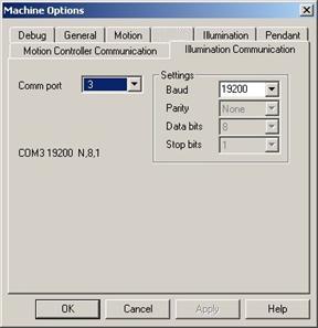 Boîte de dialogue Options machine - onglet Communication d'éclairage