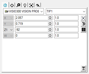 Cliquez sur les flèches Haut et Bas pour changer la valeur dans la zone d'édition Position actuelle. Votre palpeur Vision se déplace alors en temps réel de la valeur indiquée. Ou bien, vous pouvez entrer la valeur et appuyer sur Entrée pour que votre Palpeur Vision se déplace.