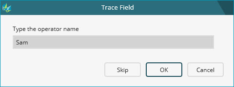 TRACEFIELD/DISPLAY=YES,REPORT=NO,DISPLAY MESSAGE=Operatör adını yazın; Operatör : Sam