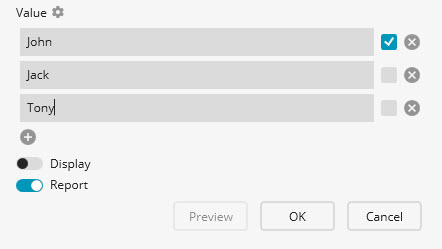 Rapor - Bu anahtar izin adını ve değerini ölçüm raporunda gösterir veya gizler.