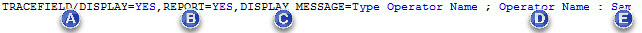 TRACEFIELD/DISPLAY=YES,REPORT=NO,DISPLAY MESSAGE=V2 ; V1 : V3