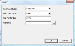 Ekle | Dosya G/Ç Komutu | Dosya Aç menü seçeneği, ölçüm yordamının yürütülmesi sırasında bilgisayarınızdan bir dosya açan Düzen penceresine bir komut koymanızı sağlar.