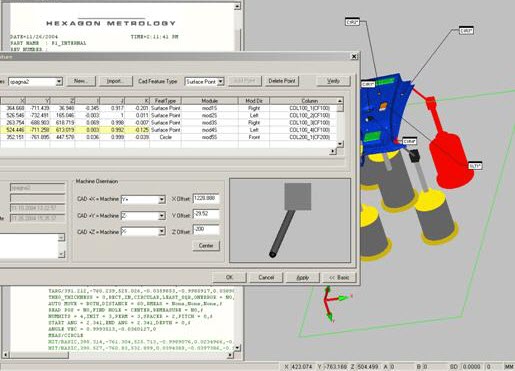 Aşağıda makine, fikstürler, problar ve CAD modelinin Grafik Görüntüleme penceresinde göründüğü bir senaryo örneği bulunmaktadır. Bir öğeyi göstermek veya gizlemek için o öğe türüyle ilişkili seçeneği seçin.