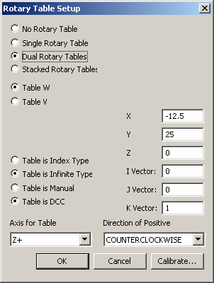 Pozitif Dönüş Yönü açılır kutusundan CLOCKWISE veya COUNTERCLOCKWISE seçeneklerini belirleyin. CNC makinelerinin, tabla ekseni vektörü ile dönüş yönü arasında soldan bir ilişkisi olabilir. Dönüş yönü, biri Tabla Vektörü Ekseni'ne doğru "aşağı" bakarken tablanın nasıl döndüğünü tanımlar.