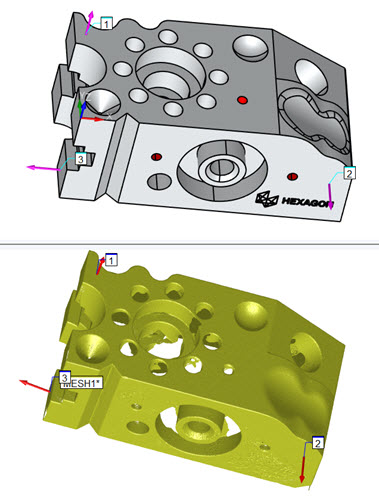 如果自动计算没有计算好的对齐方式,请使用点对区域进行粗略对齐。如果没有关闭,这将使网格足够靠近 CAD。如果需要,您可以进一步细化对齐。如果网格不完整或包含属于夹具、转台或其他类似功能的扫描数据,则应使用此类坐标系。